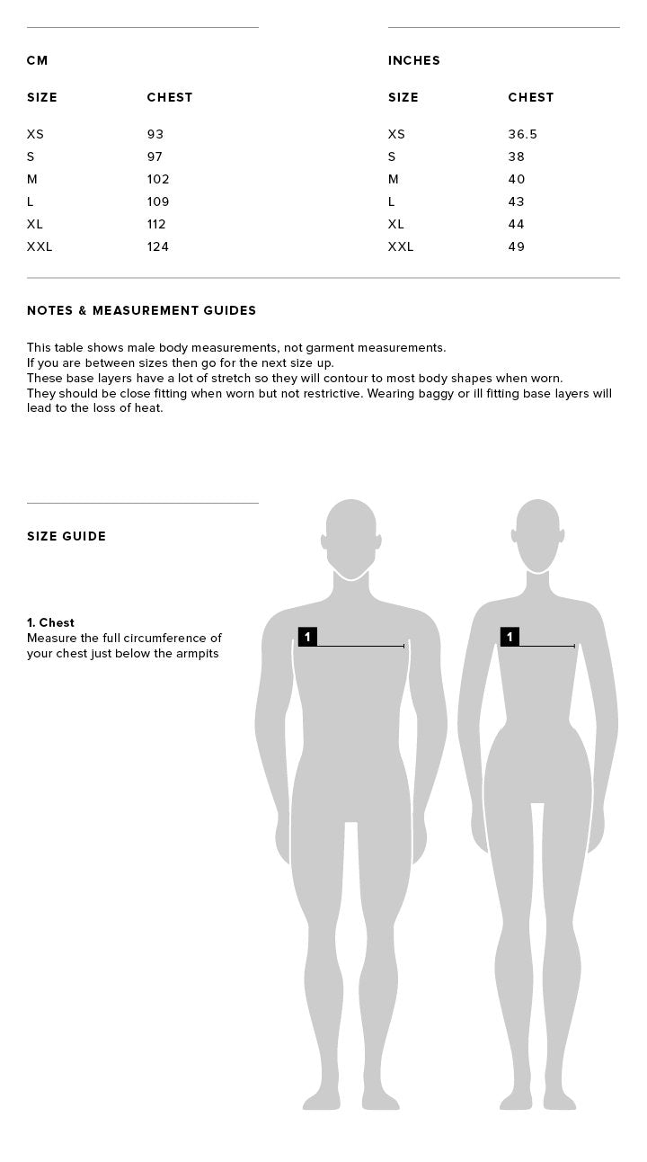 The only seams present on these base layer thermal tops are on the sleeves and the shoulders where they incorporate other design features. The set-in sleeves provide a much more tailored fit in the armpits, maximising insulation and moisture transportation (wicking), whilst the seam on the sleeve length allows the addition of a thumb hole near to the cuff. This allows the wearer to place further layers on top of the base layer without the sleeves riding up, and can also protect the palm of the hand from cold weather. The round neck has been designed so that it stretches when placed over your head and its low profile also means it is not prominent when worn under clothing. Body lengths in all our base layer and mid layer designs are long,  giving the wearer a decent amount of fabric to tuck in to their trousers. This helps to avoid lower back exposure during activities and when sitting down.